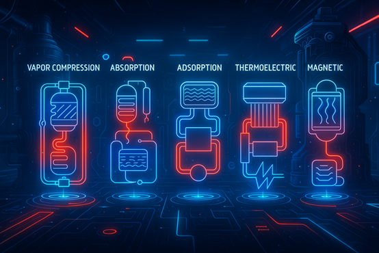 为系统把握制冷技术的发展脉络,准确理解不同制冷方式的技术特点和应用场景,本文将重点介绍蒸气压缩制冷、吸收式制冷、吸附式制冷、热电制冷、磁制冷、声制冷等六种主流制冷技术,剖析其工作原理、结构组成、运行特点,并结合工程实际,探讨其应用现状和发展趋势,以期为制冷行业从业者提供参考,并为相关领域的技术创新提供思路。