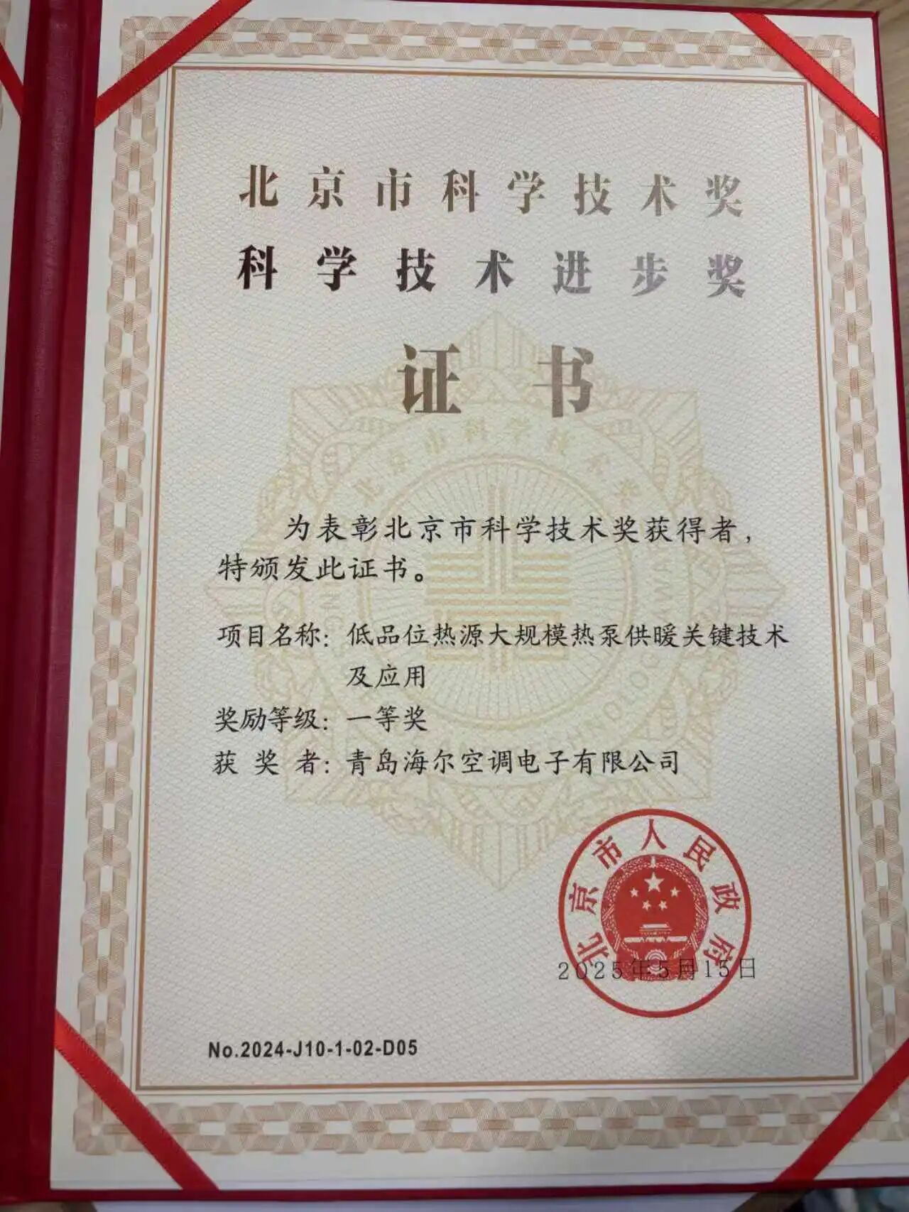 日前,2024年度北京市科学技术奖公布。其中,海尔智慧楼宇参与的“低品位热源大规模热泵供暖关键技术及应用”项目,获北京市科学技术进步一等奖。